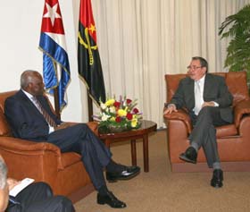 En horas de la tarde de este viernes, el Primer Vicepresidente de los Consejos de Estado y de Ministros, General de Ejército Raúl Castro Ruz, recibió al Presidente de la República de Angola, José Eduardo Dos Santos, quien realiza una visita oficial a nuestro país desde el 20 de septiembre