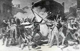 combate, las tropas británicas, rodeadas por los rebeldes, se vieron