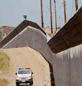 frontera suroeste con barreras físicas y tecnología de detección, a