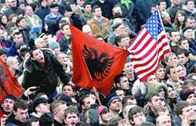 millares de albaneses de Kosovo festejaban la declaración de