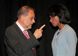 Uno para la otra. Solana tal Condoleezza. Viajan al mismo lugar