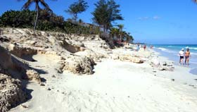 playa de Varadero al observar el afloramiento de rocas en puntos muy