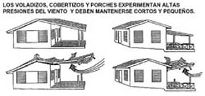 ráfagas de aire; mientras que el ángulo del techo debe tener una