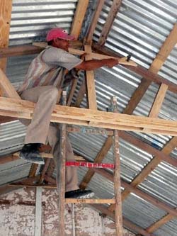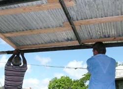 hermanada ayuda, obreros de Jobabo concluyen el techo de la escuela