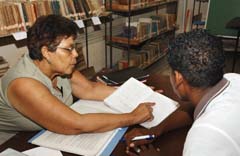 Sentados en la intimidad de la biblioteca, ella y el bisoño PGI