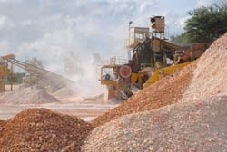 De la mina cercana extraen las piedras, que son reducidas al