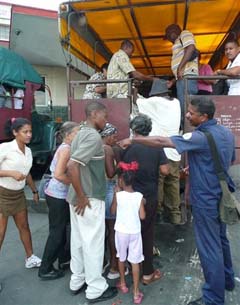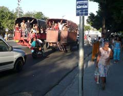 Platanillo agenciándose pasaje siendo un vehículo de carga.