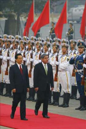 Exteriores y el de Comercio, además de una delegación de unos 100
