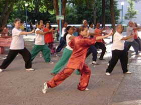 práctica el Taiji-Quan, se repleta de pobladores entre las edades