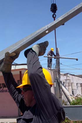 uno de los más de 250 linieros cubanos que en la Isla de la Juventud