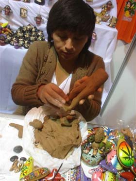 barro en el stand peruano de Arte Ore, donde la artesana crea ante