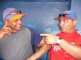 Rolando Meriño y Eriel Sánchez, y el primera base Ariel Borrero, los