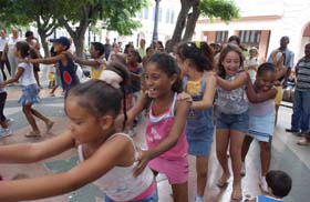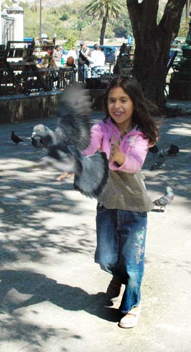palomas que pueblan la Plaza de Armas, otros en juegos colectivos