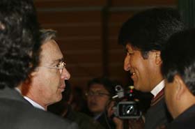 El gobernante boliviano dijo que Uribe le expresó su