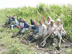 siembran caña, guataquean y recogen obstáculos, que participan en la