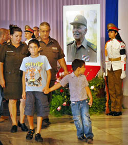 pequeños Fidel y David fueron a rendirle tributo al Comandante de la
