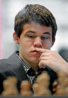 Nanjing, el noruego Magnus Carlsen (18 años) jugó con blancas ante