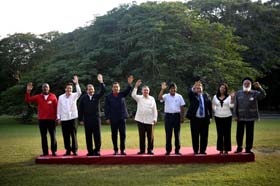 la salida de la Casa del ALBA, Raúl y los dignatarios invitados