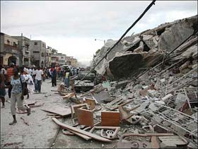 El panorama es tenebroso. Escombros por doquier y cuerpos sin