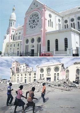 haitiana: el Palacio Presidencial y la Catedral.