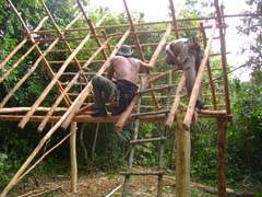 Para levantar otra vez la "muralla" de guano y madera rolliza los