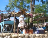 centro de la demolida urbe en busca de alguien que quiera comprarle