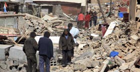 viviendas derrumbadas en el poblado de Gyegu, en la prefectura