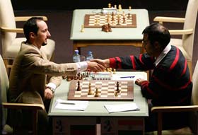 Partida 1: Blancas: V. Topalov–Negras: V. Anand.