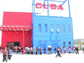 El Pabellón cubano, una moderna edificación de cristales, en cuyo