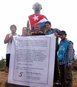 grupo ante el busto de José Martí, en el Pico Real del Turquino