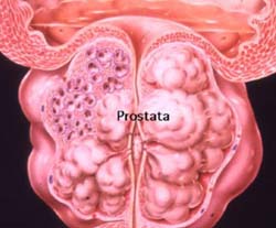 malignas dentro de la próstata, una de las glándulas sexuales del