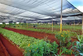 Enormes mallas sirven de sombrilla a los sembrados y posibilitan