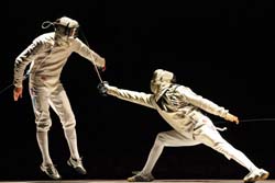 Jacobson en el combate final, mientras Mariel Zagunis (USA), titular