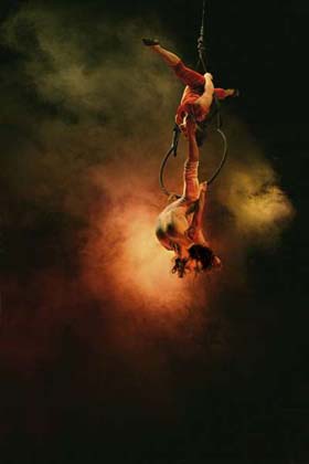 trapecistas, contorsionistas, malabaristas, escapistas, y danzarines