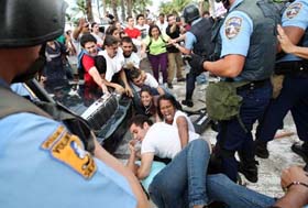sacó a fuerza de golpes a decenas de manifestantes, comentó el