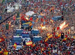 Ni bien arribó a Madrid la selección de España, los campeones