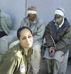las fotos, en las que posa sonriente al lado de palestinos esposados