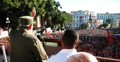Jefe Fidel Castro en la escalinata de la Universidad de la Habana