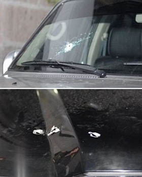 y uno en el parabrisas del vehículo, que lo trasladó al Palacio de
