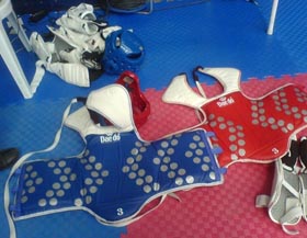 El primer contacto de nuestros taekwondistas con petos