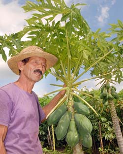la parcela abundan las siembras de yuca, plátano, fruta bomba,