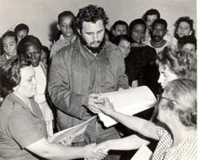 al Comandante en Jefe en una entrega de títulos de propiedad.