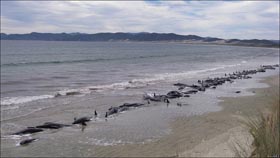 Hace un mes, 24 ballenas piloto murieron en la Isla Norte de