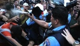 policía, que se ha encargado de reprimir brutalmente las protestas