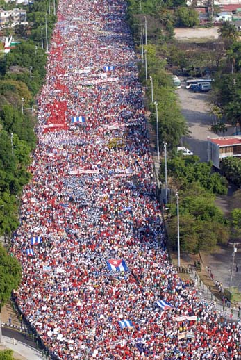 El cierre del desfile lo protagonizaron miles de jóvenes en representación de las nuevas generaciones, que constituyen la garantía de la continuidad de la Revolución. Foto: Jorge Luis González.