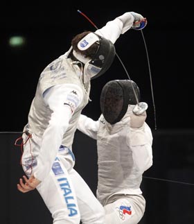 pie su fortaleza florete en mano, destacando Italia (primero), China