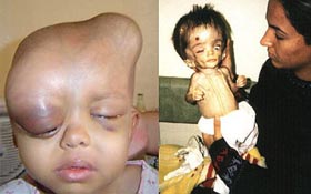 tumores y deformidades congénitas —sin ojos y sin extremidades, por