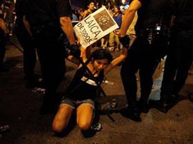 española reprimió hoy una manifestación en esta capital contra el
