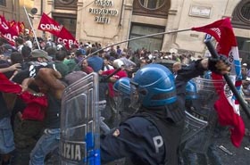 contra los manifestantes concentrados en las plazas Montecitorio y