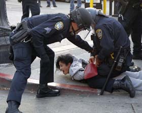 ellos en Oakland, y desalojaron a la fuerza y arrestaron a más de 50
